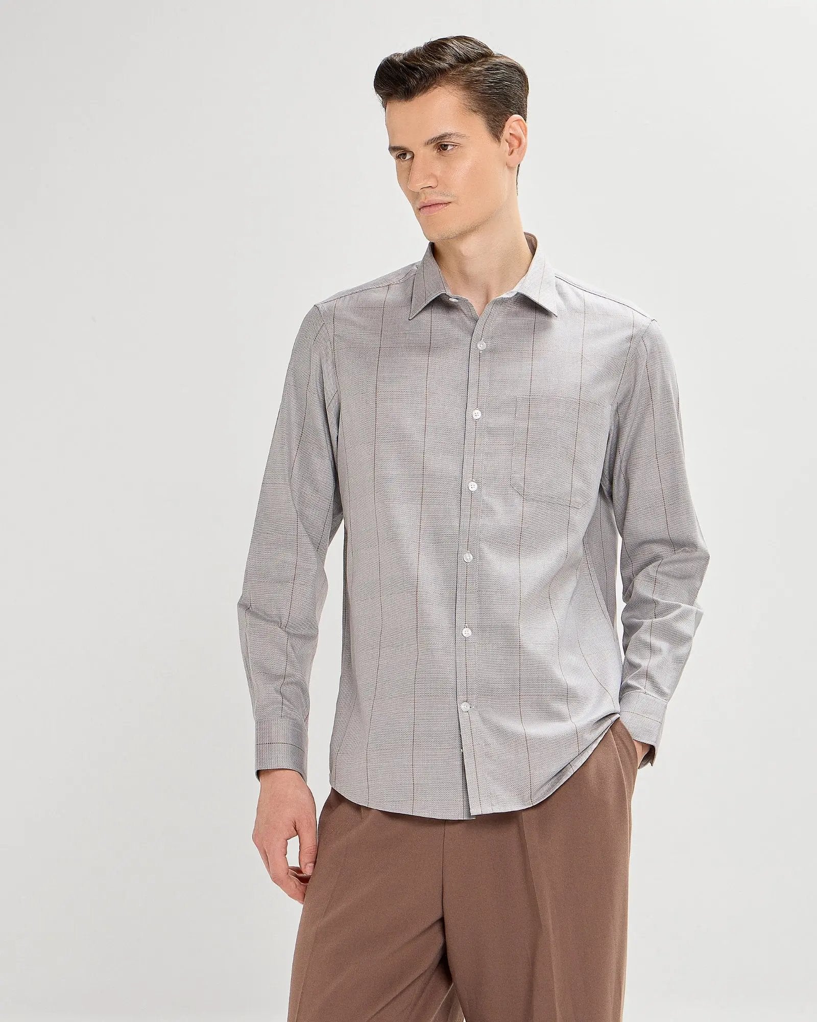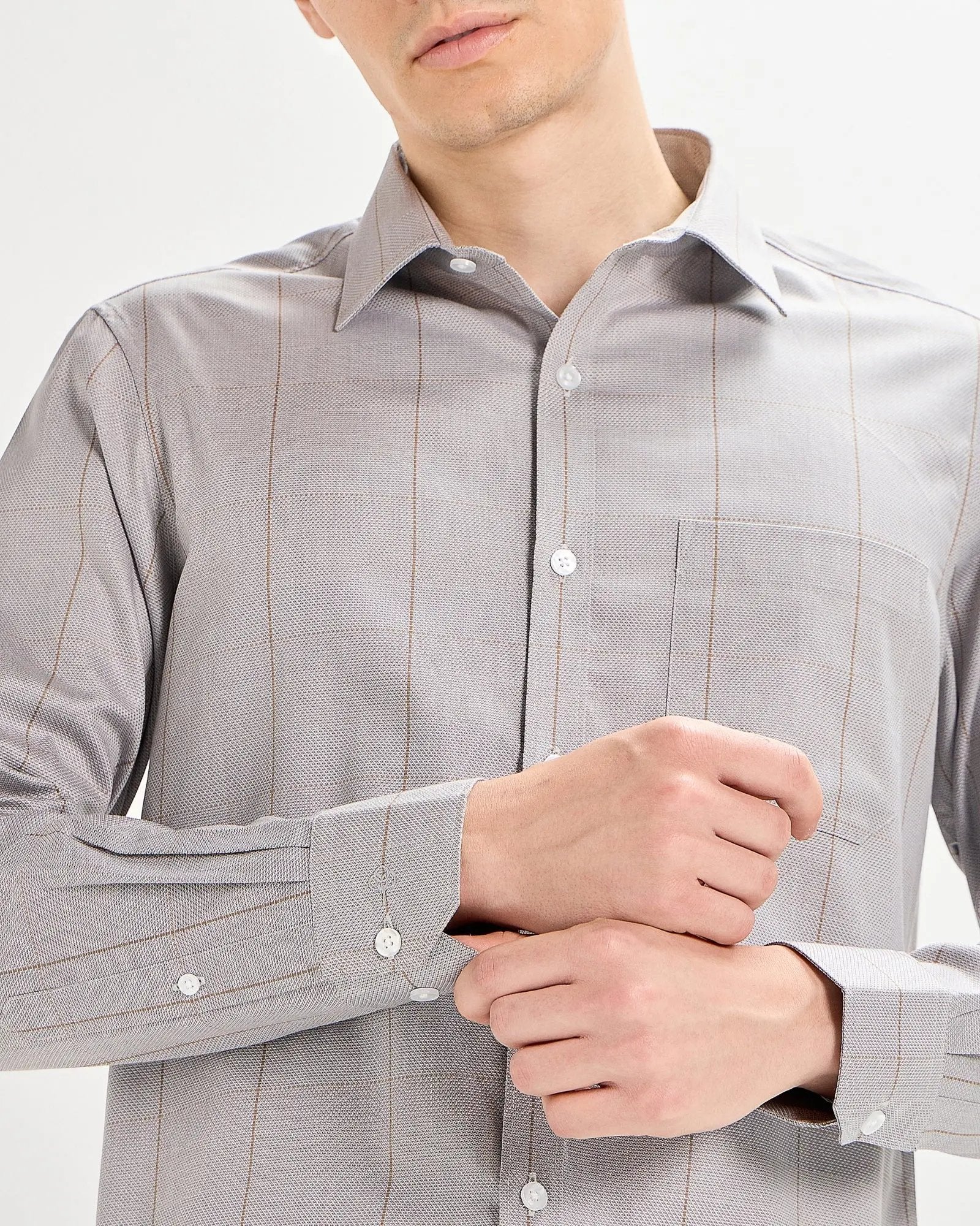 Upgrade your wardrobe with our Driftwood Checks Shirt. Made from high-quality Giza cotton, this smart shirt boasts a soft and breathable fabric that's perfect for any occasion.
