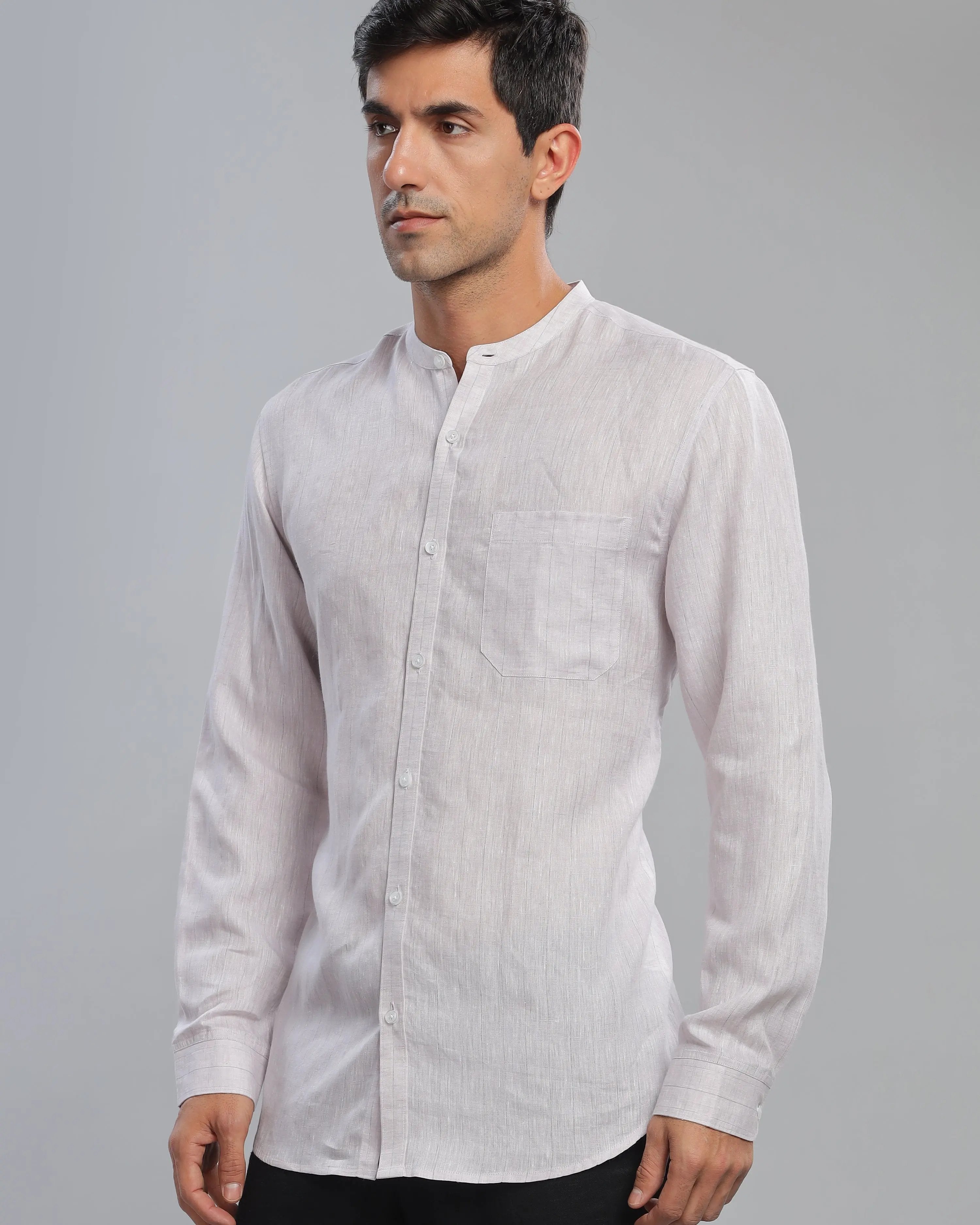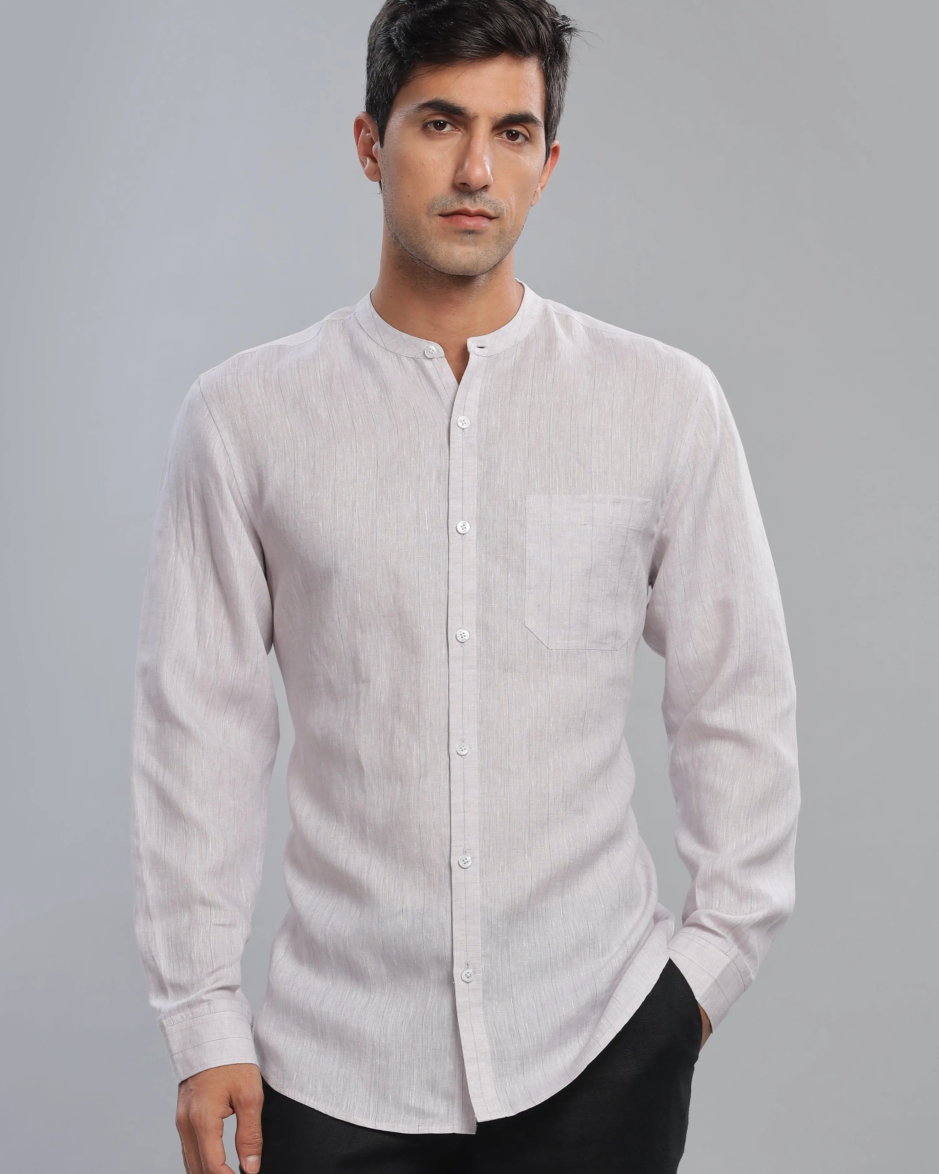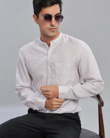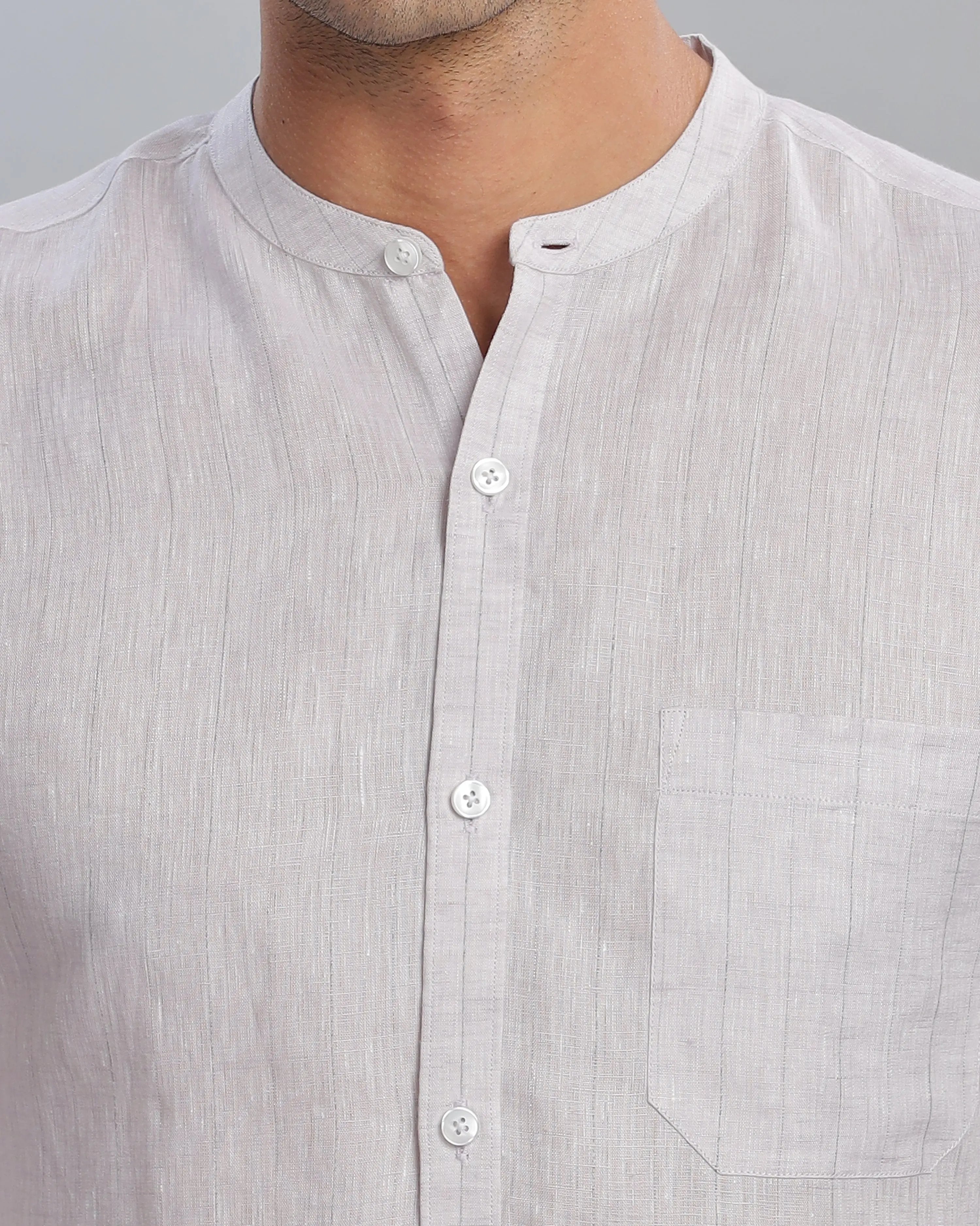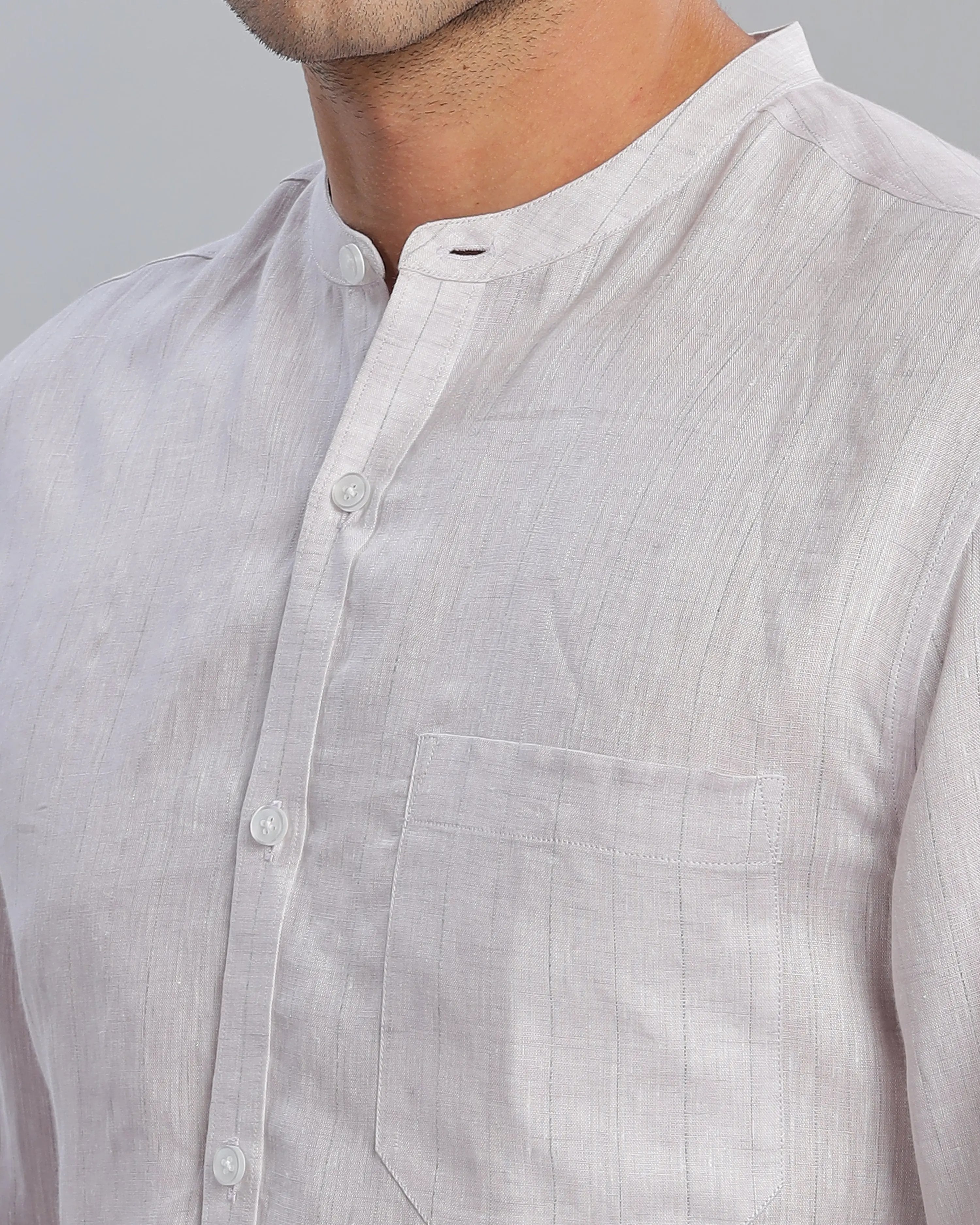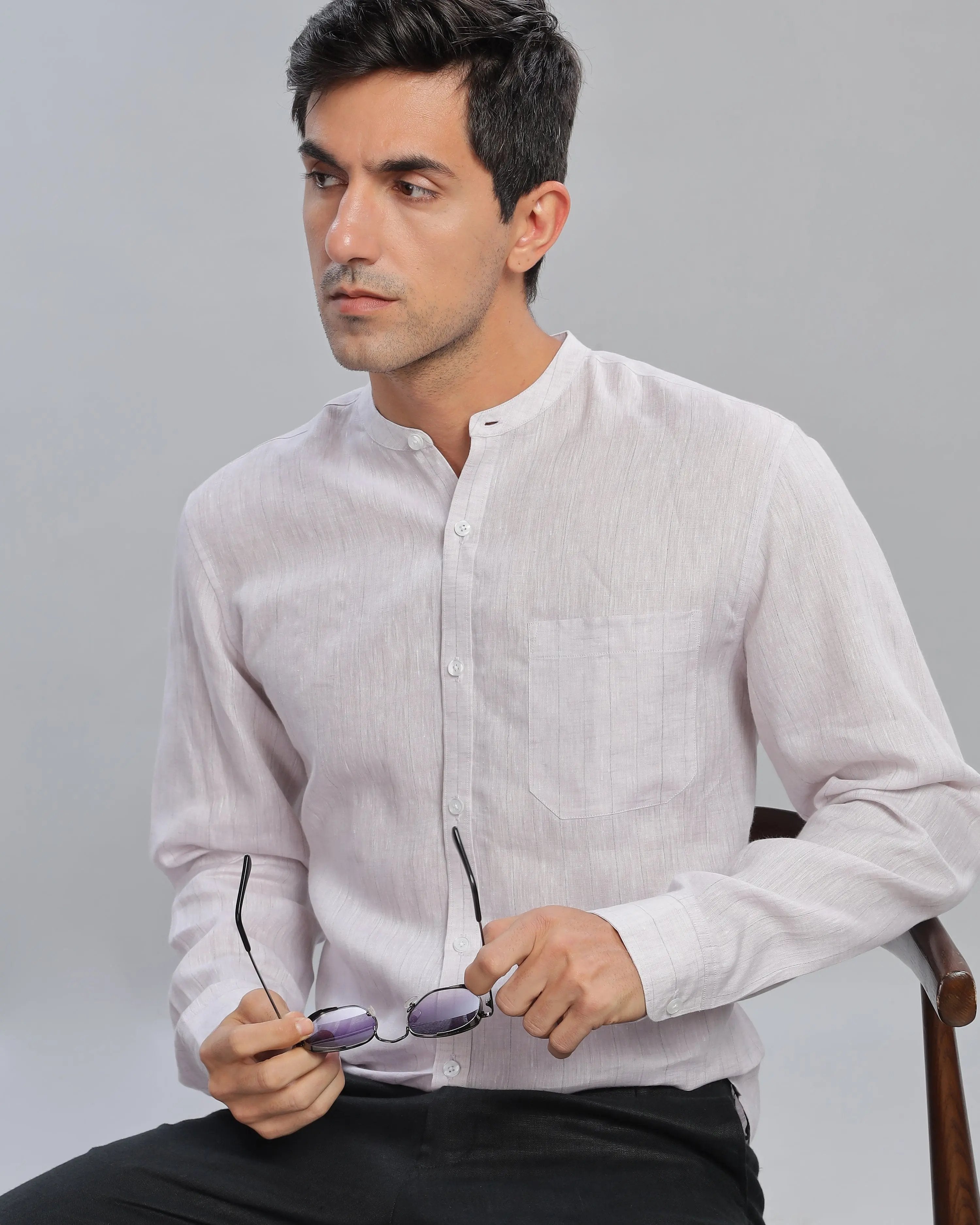 Get ready for some stylish spring vibes with our grey lilac striped linen shirt. Made from lightweight and breathable linen, this shirt will keep you cool and comfortable all day long. Perfect for a casual yet fashionable look. Time to upgrade your wardrobe game!
