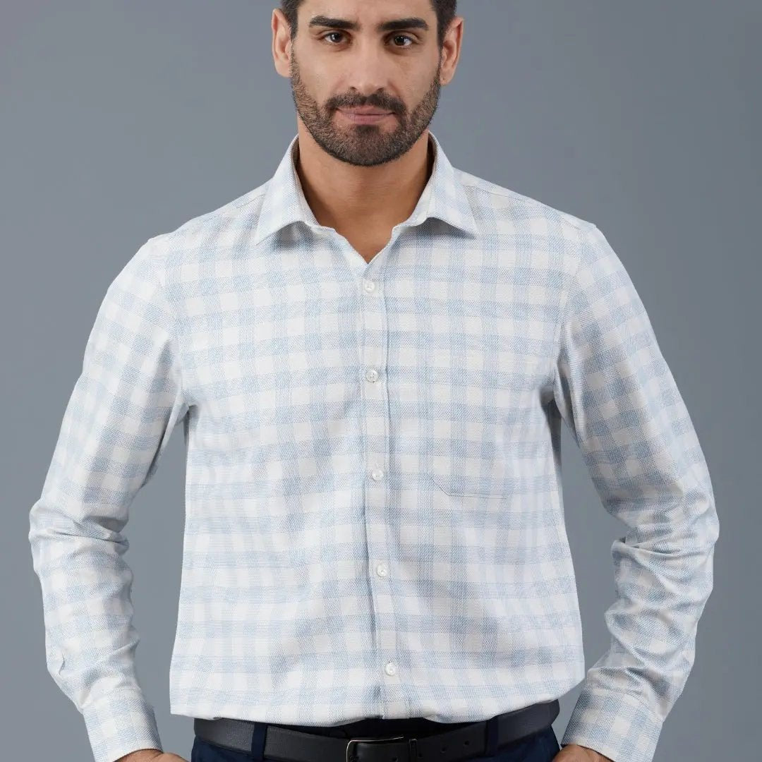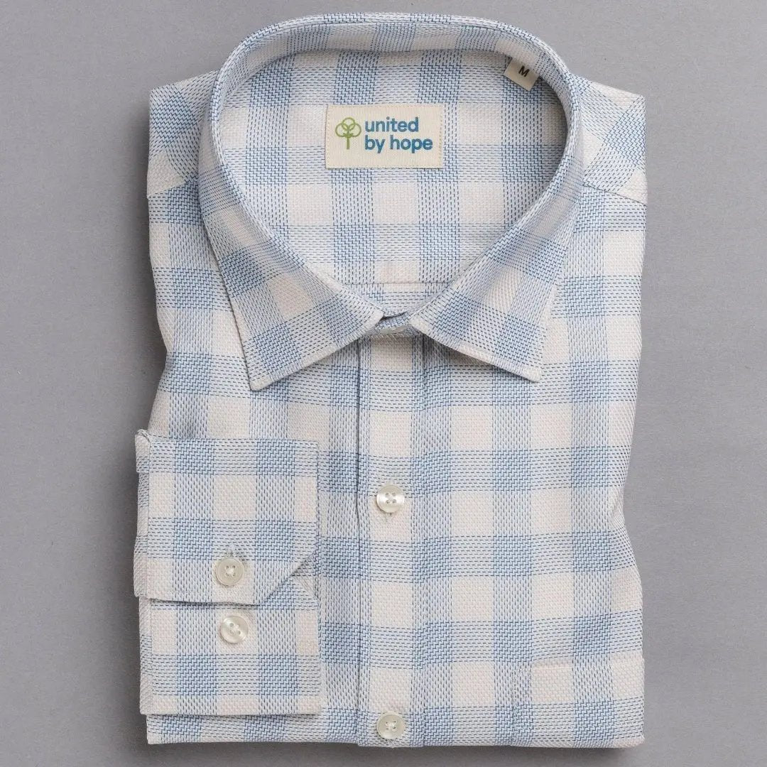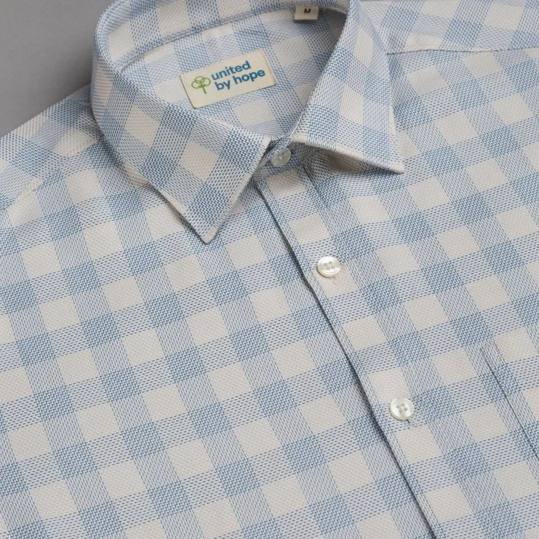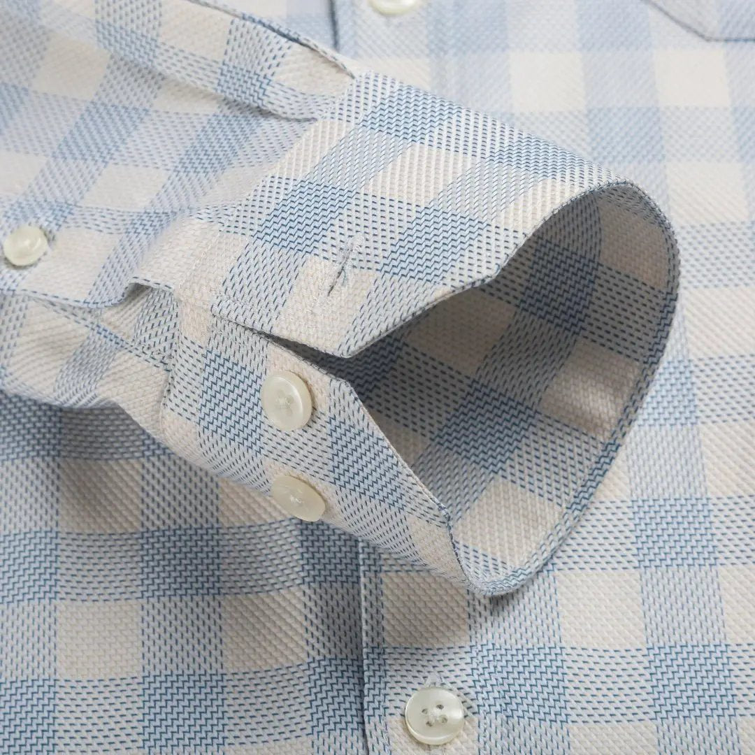 Your wardrobe just got a major upgrade with this top-tier shirt. Crafted from premium Giza cotton fabric with impeccable craftsmanship, this beige and blue checked shirt exudes sophistication and quality.