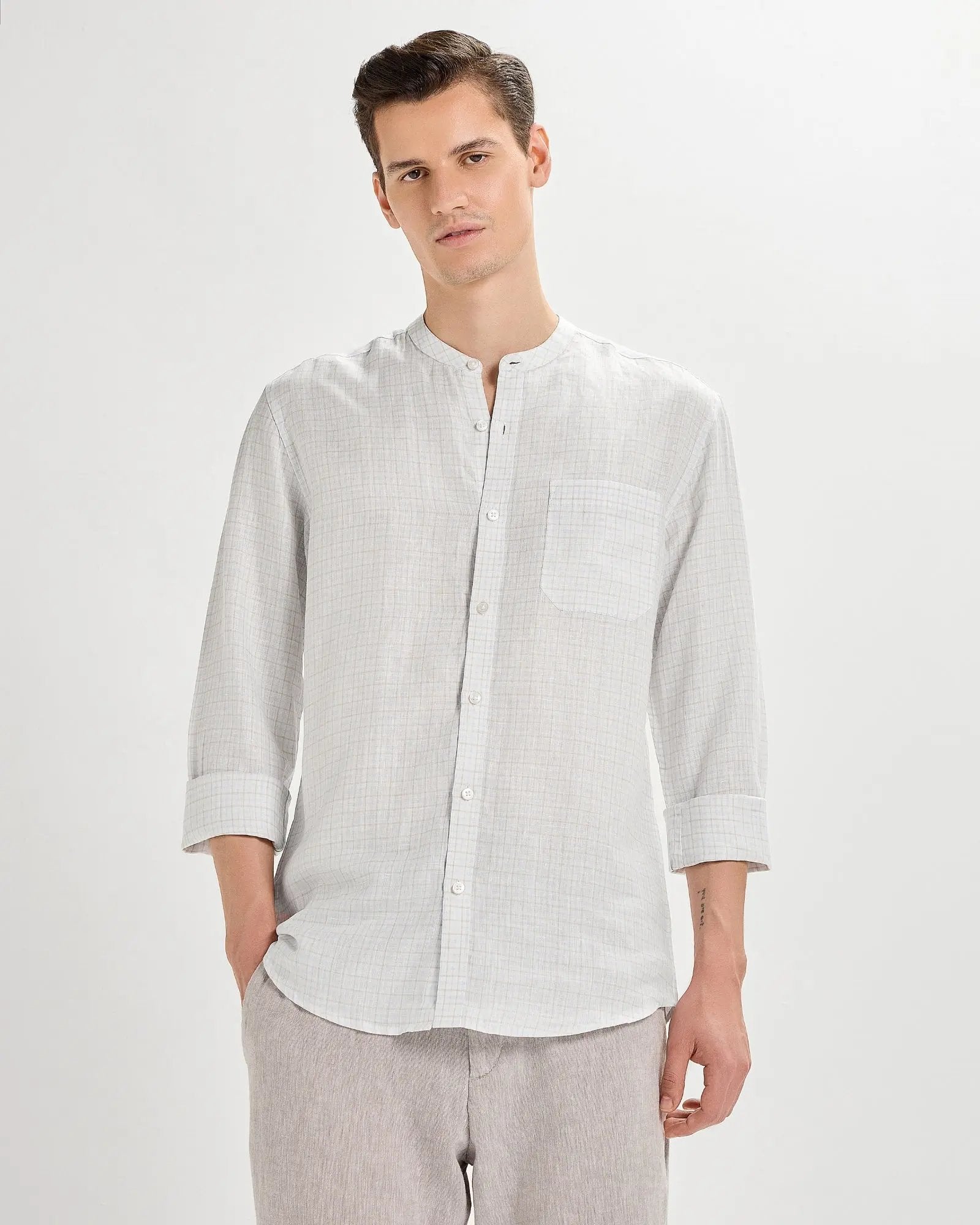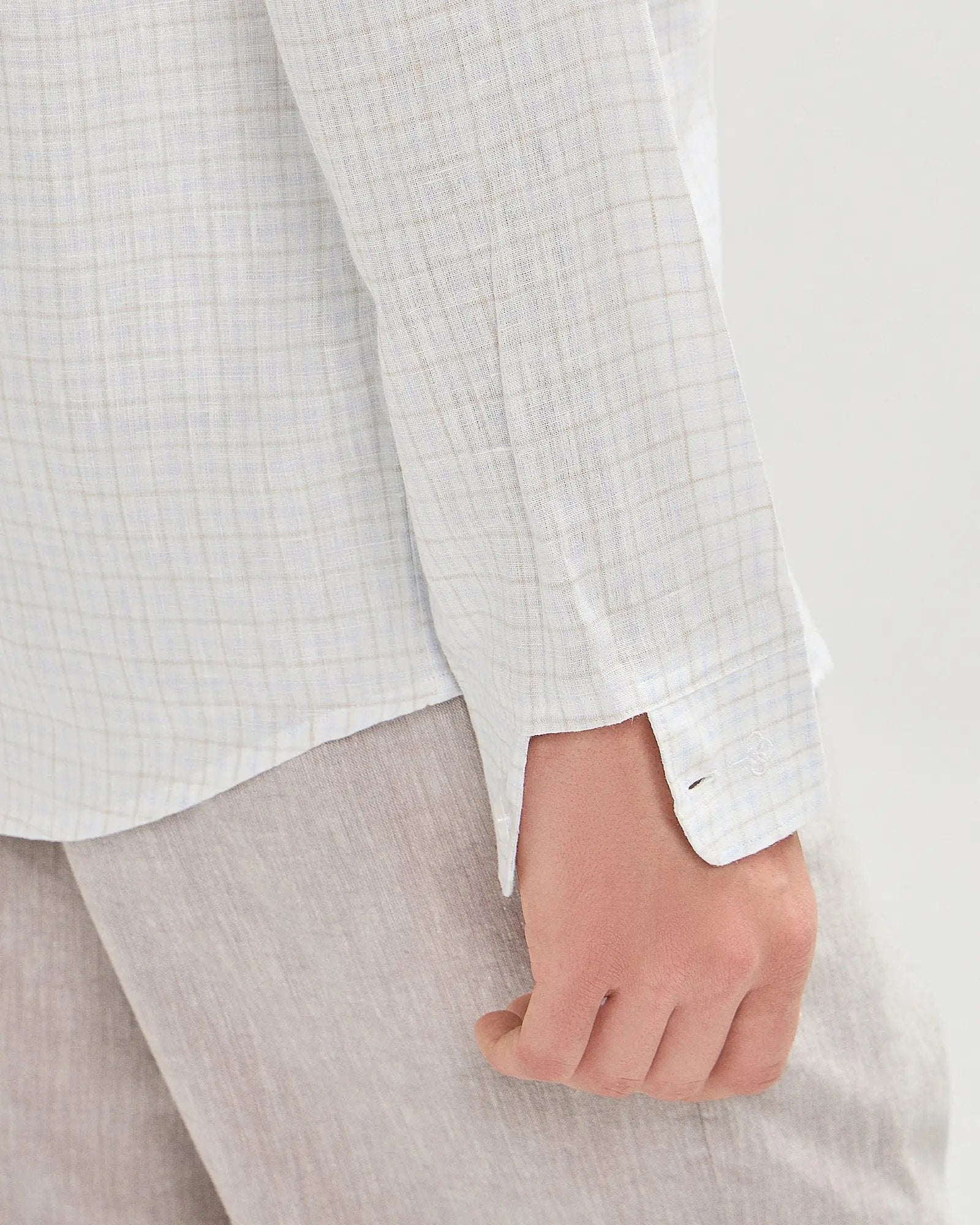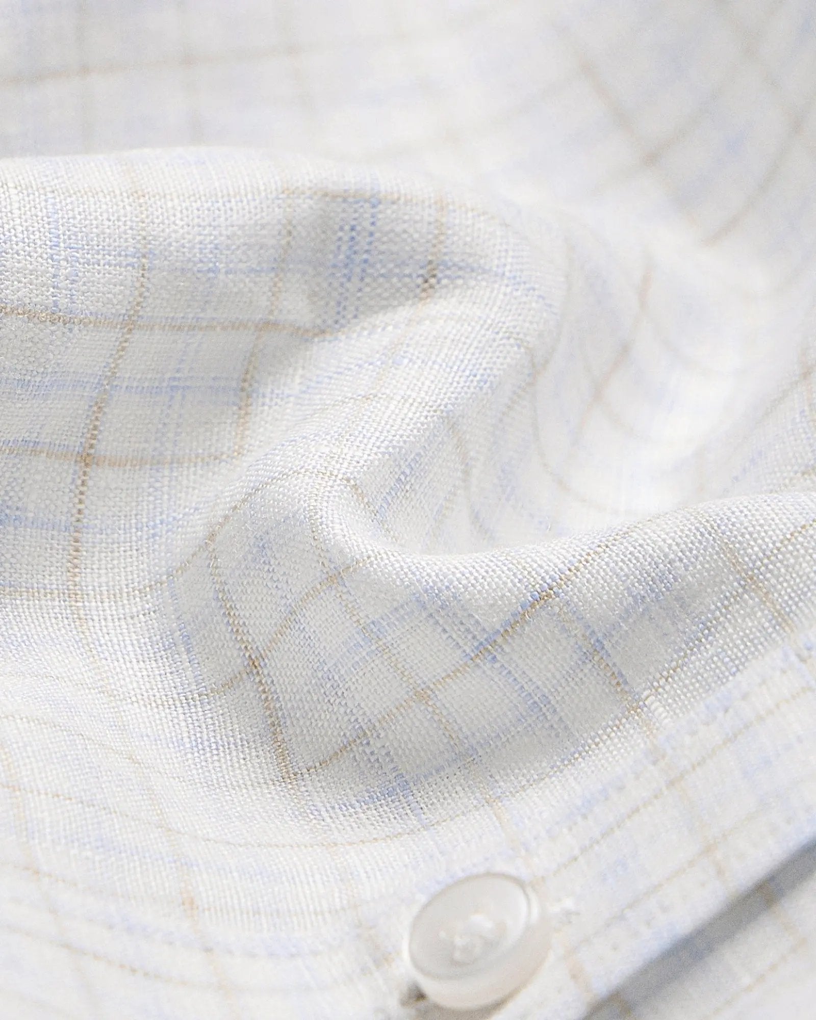 Stay cool and stylish with the Nimbus Cloud Linen Checks Shirt. Made with breathable linen fabric, this shirt features a playful check pattern for a touch of personality. Perfect for a casual day out, this shirt will surely lighten up your wardrobe.