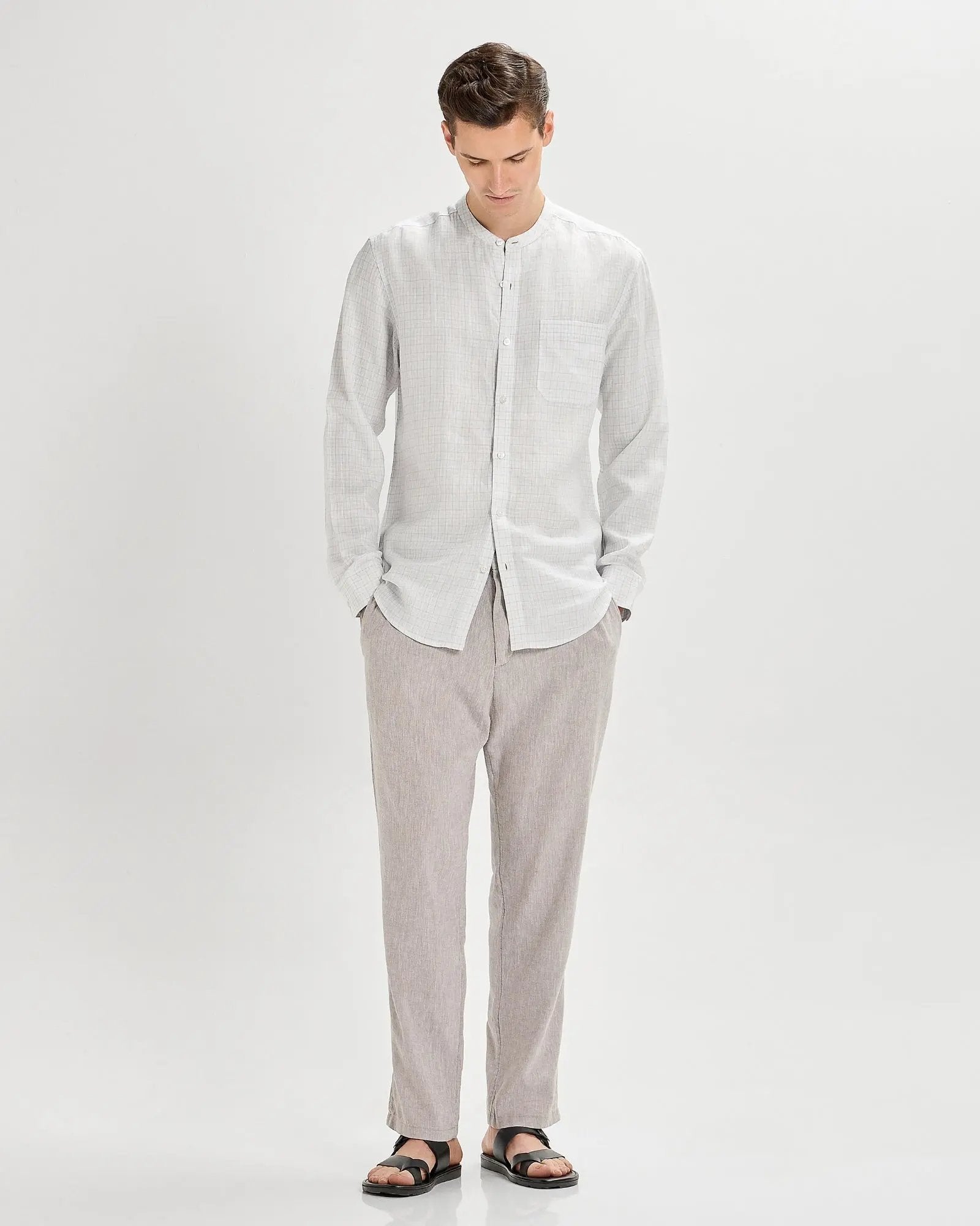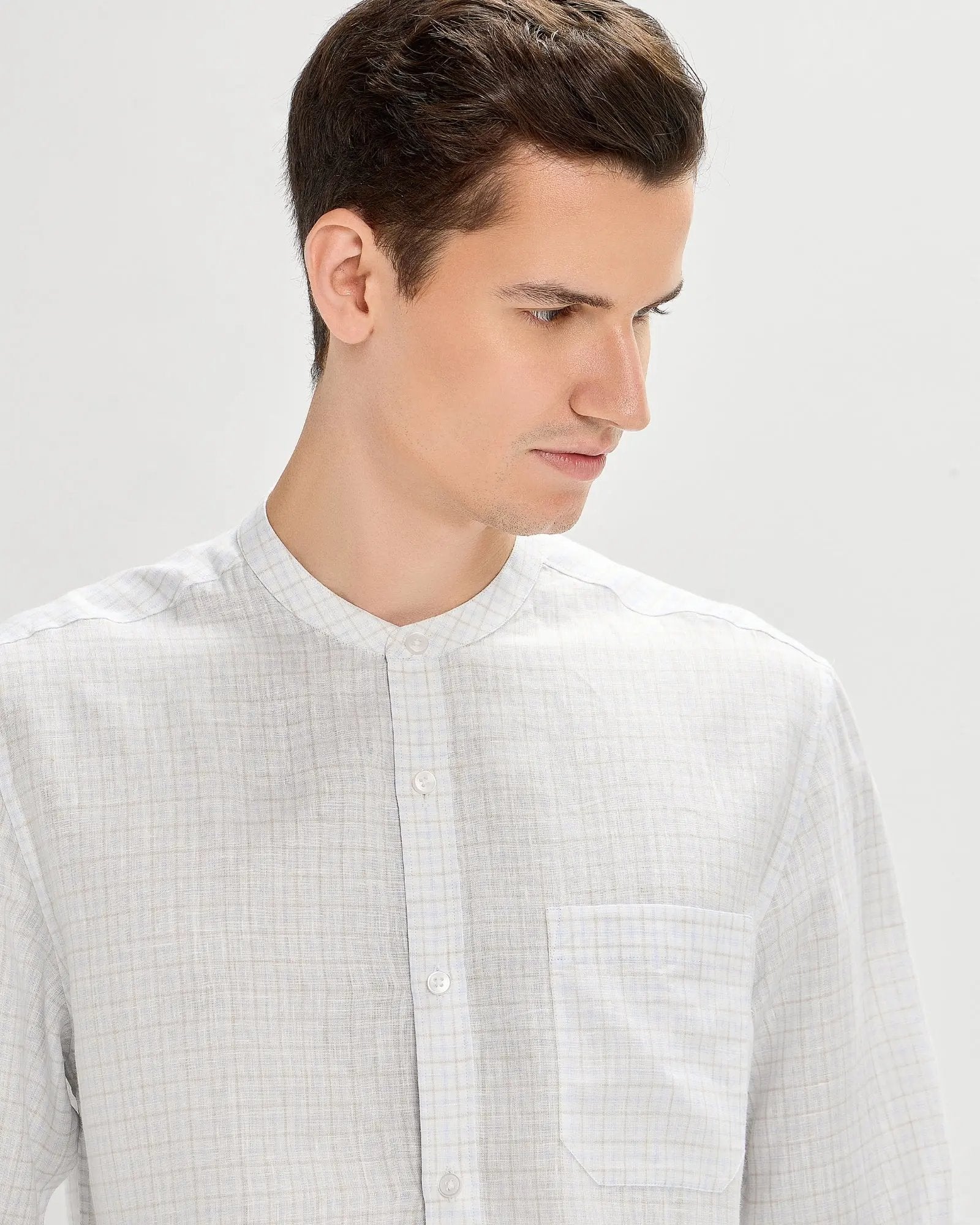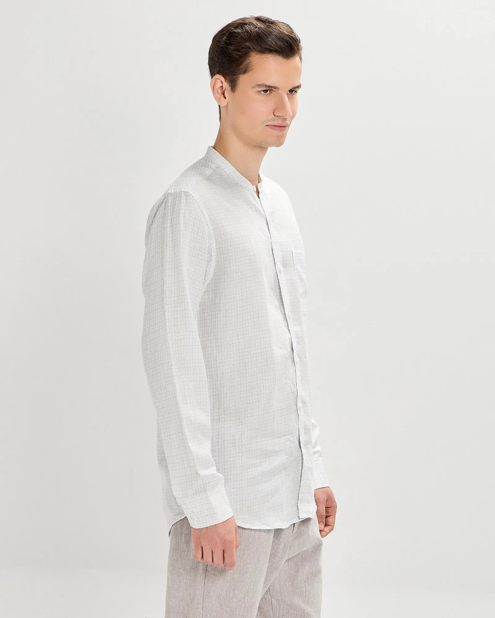 Stay cool and stylish with the Nimbus Cloud Linen Checks Shirt. Made with breathable linen fabric, this shirt features a playful check pattern for a touch of personality. Perfect for a casual day out, this shirt will surely lighten up your wardrobe.