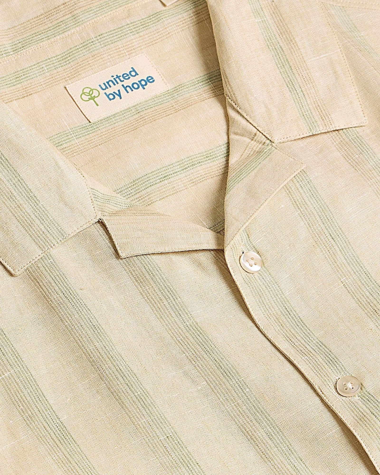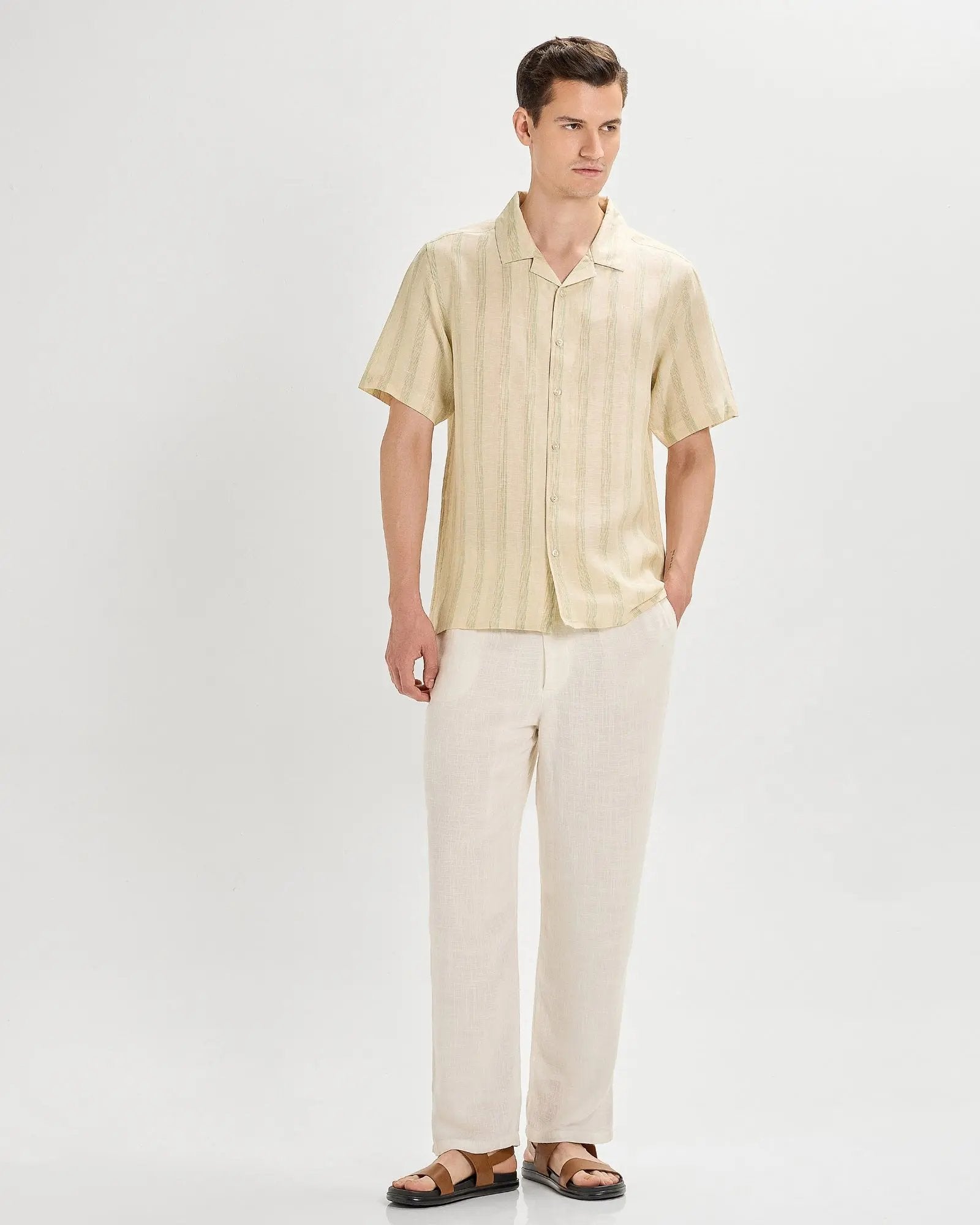 Slip into style with this Sandshell Striped Linen Shirt. Perfect for any casual occasion, this shirt is made with lightweight linen for a breathable and comfortable fit. The stripes add a touch of sophistication to this relaxed and versatile shirt.