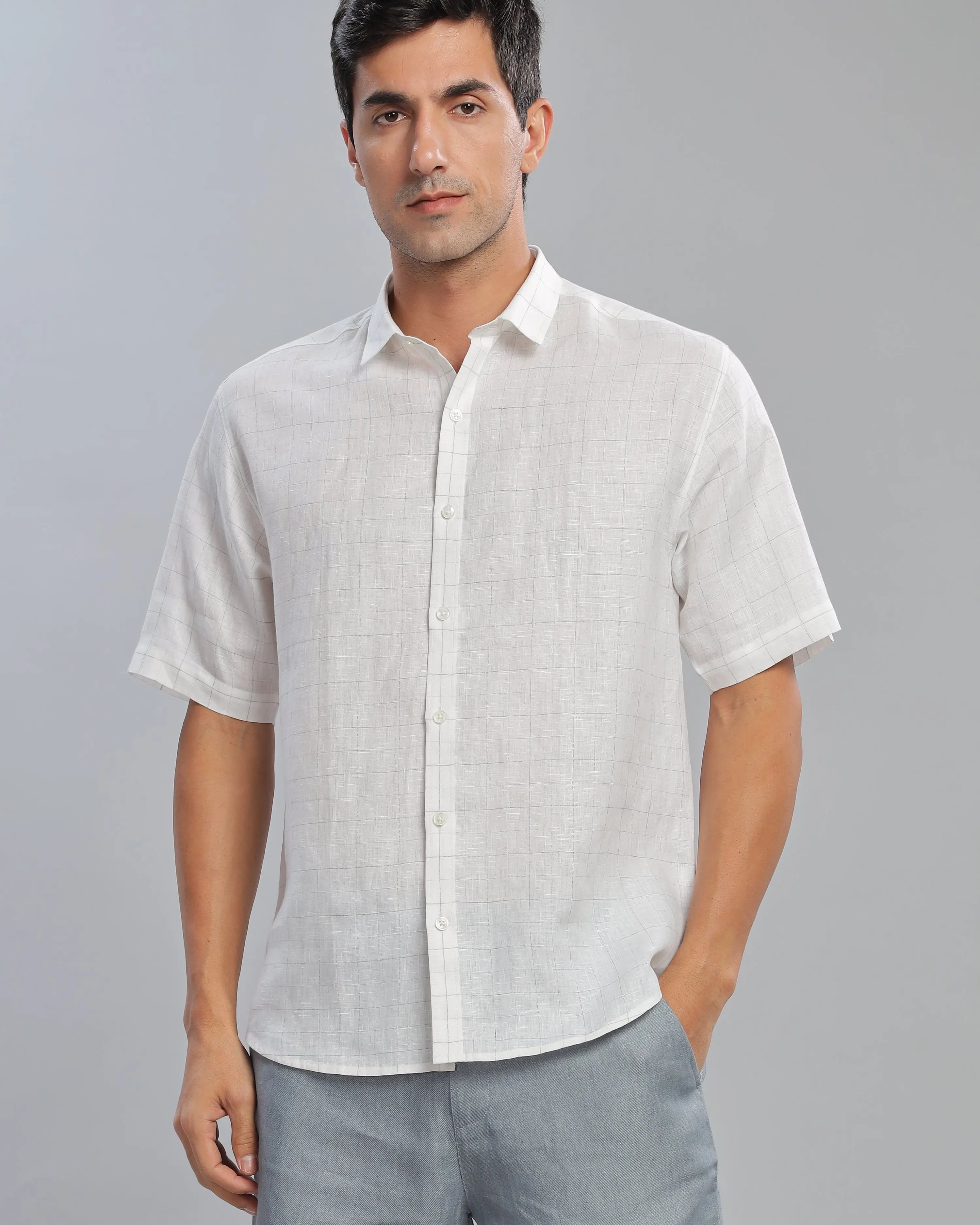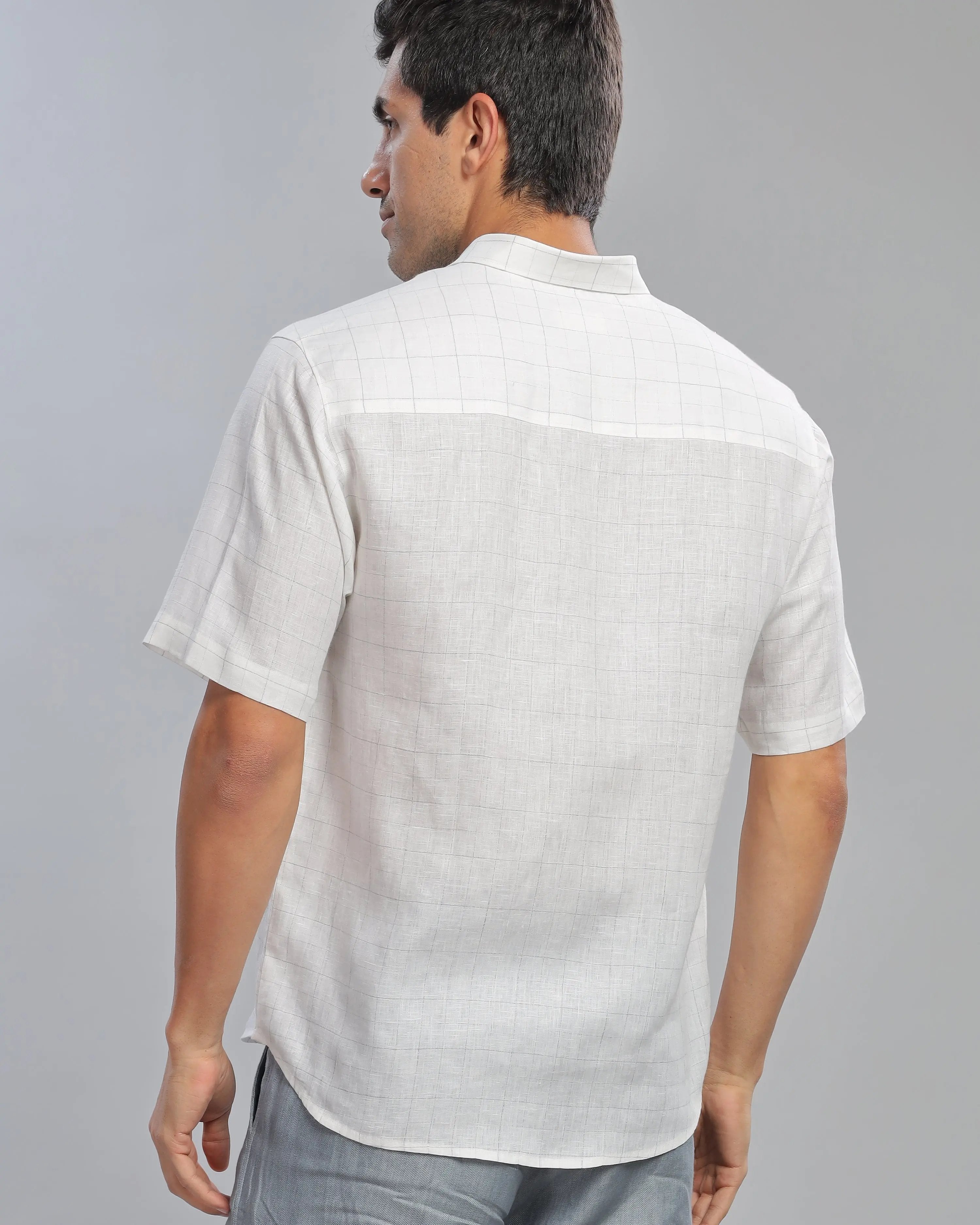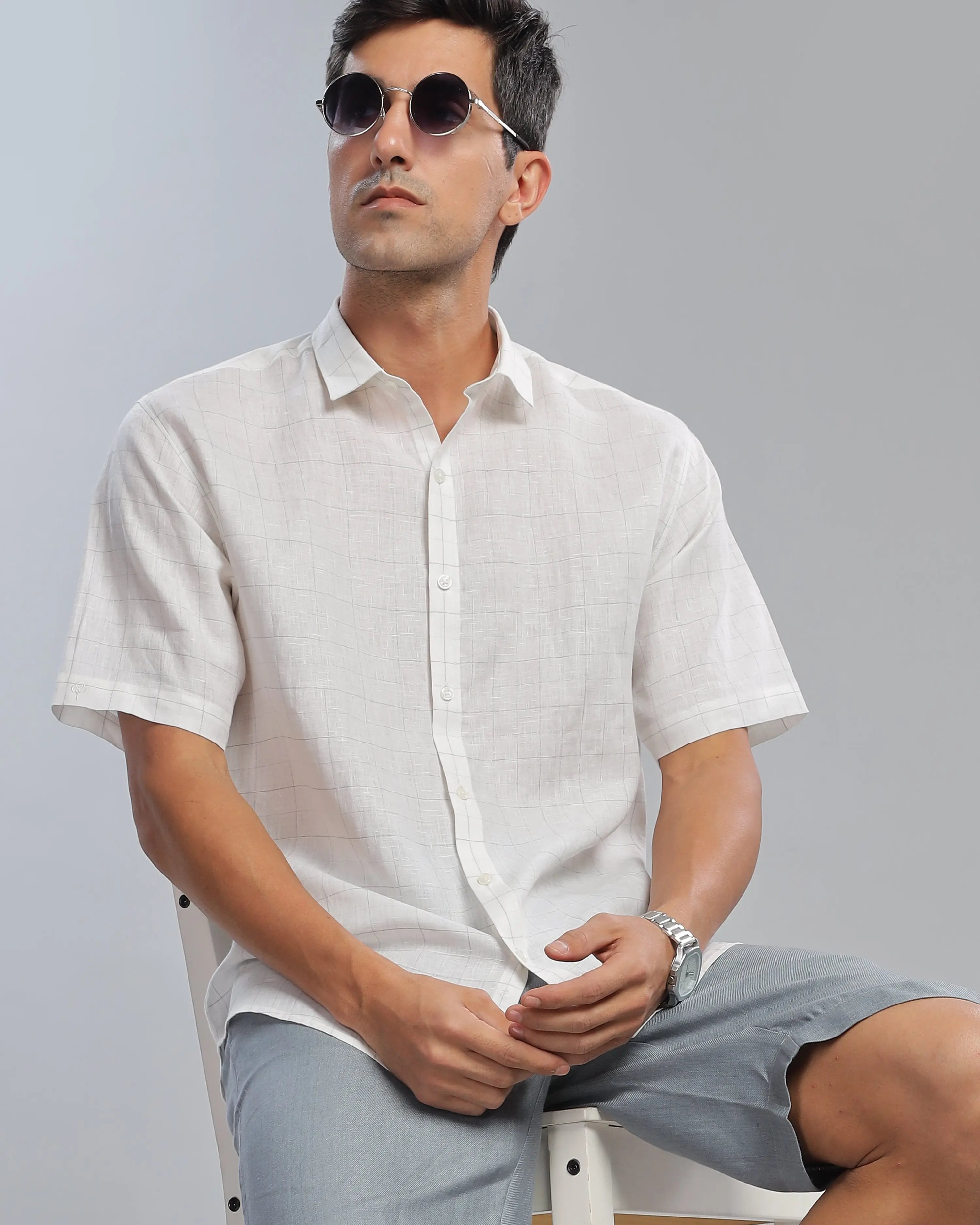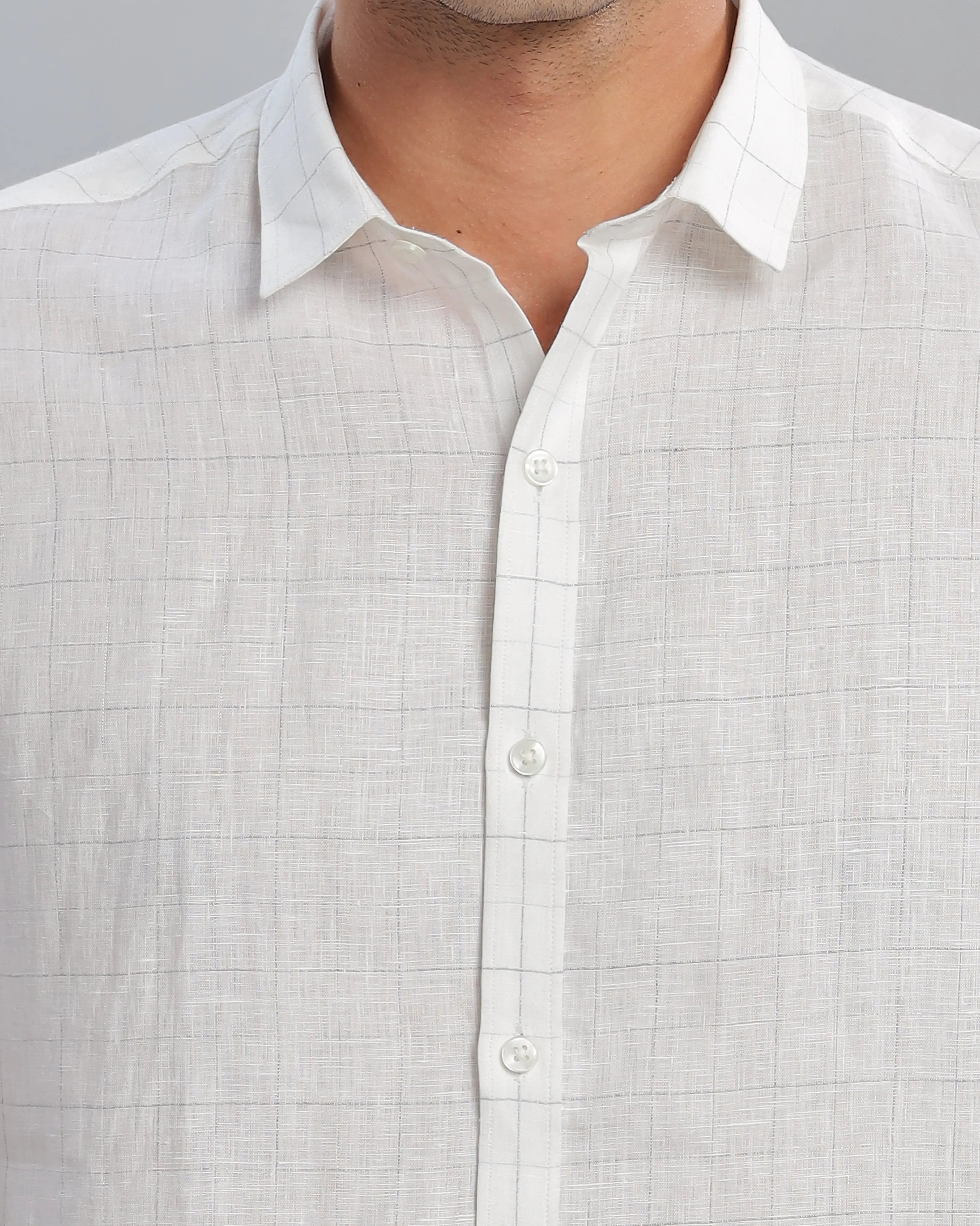 Introducing our smart Seedpearl Checked Linen Shirt! This trendy shirt is perfect for any occasion and will leave you feeling stylish and put together. Made from high-quality linen, you can stay cool while looking your best. Don't miss out on this must-have piece!