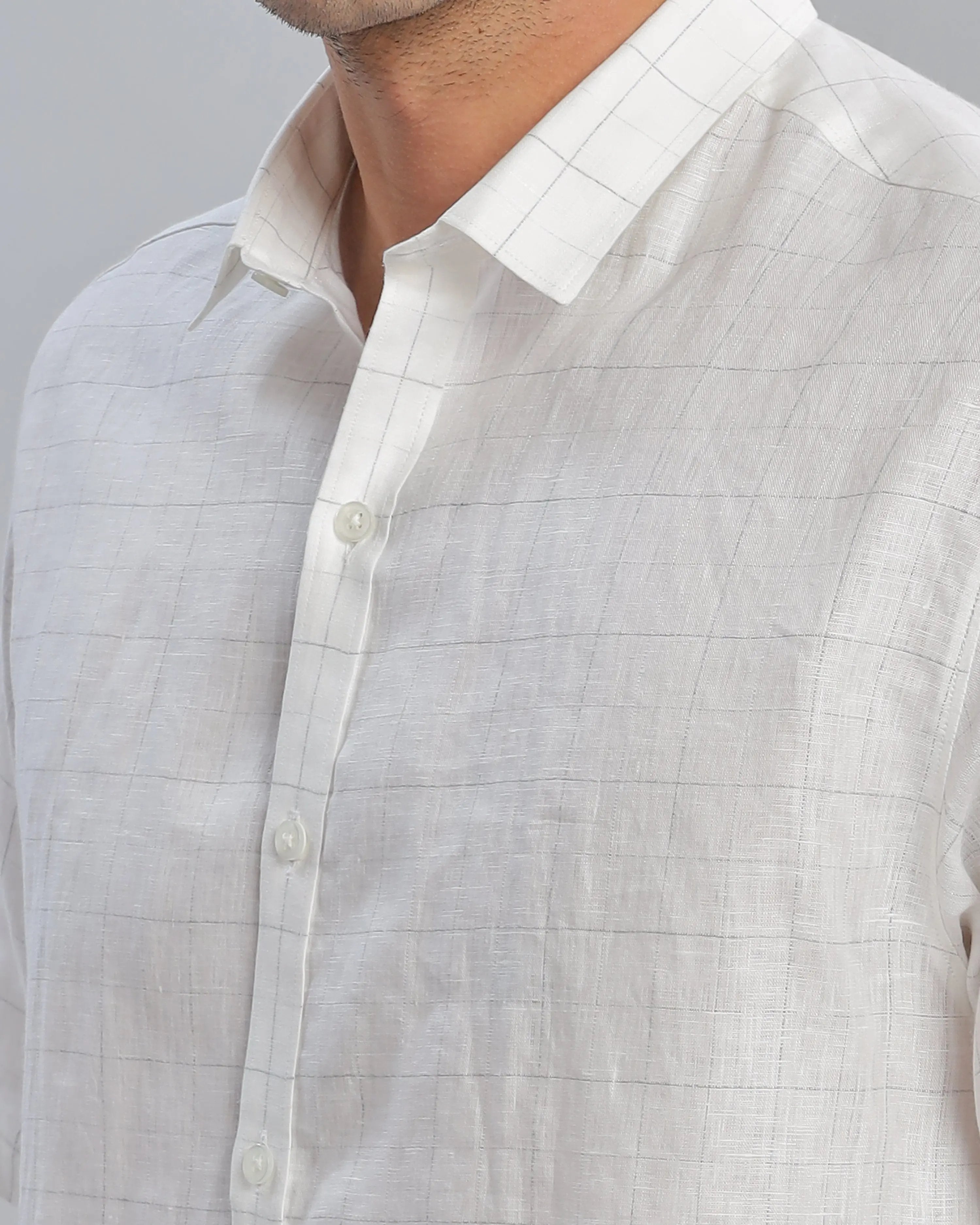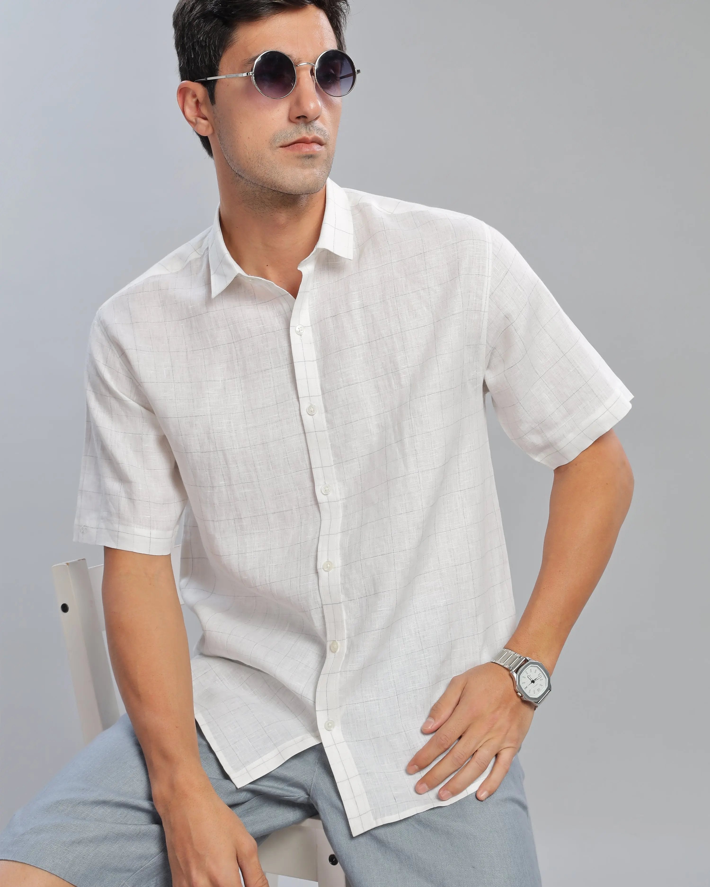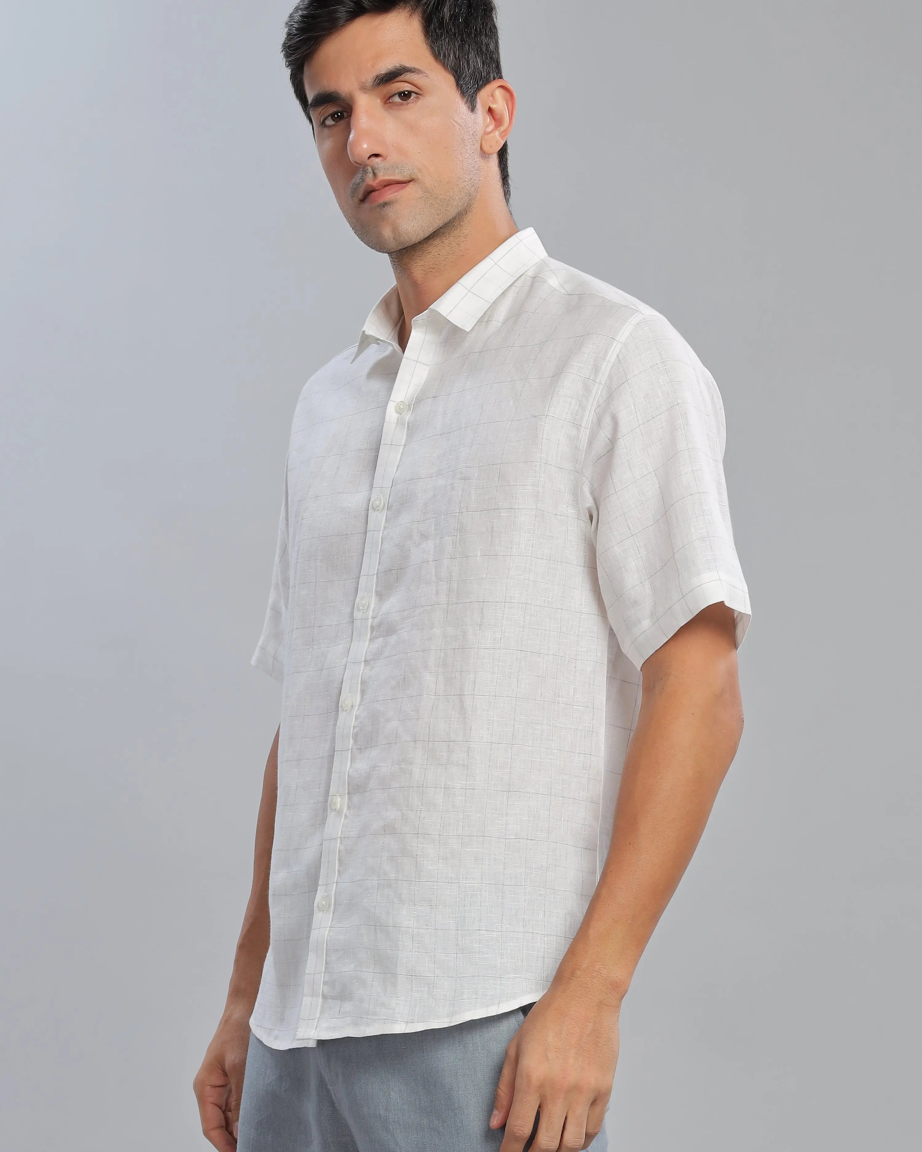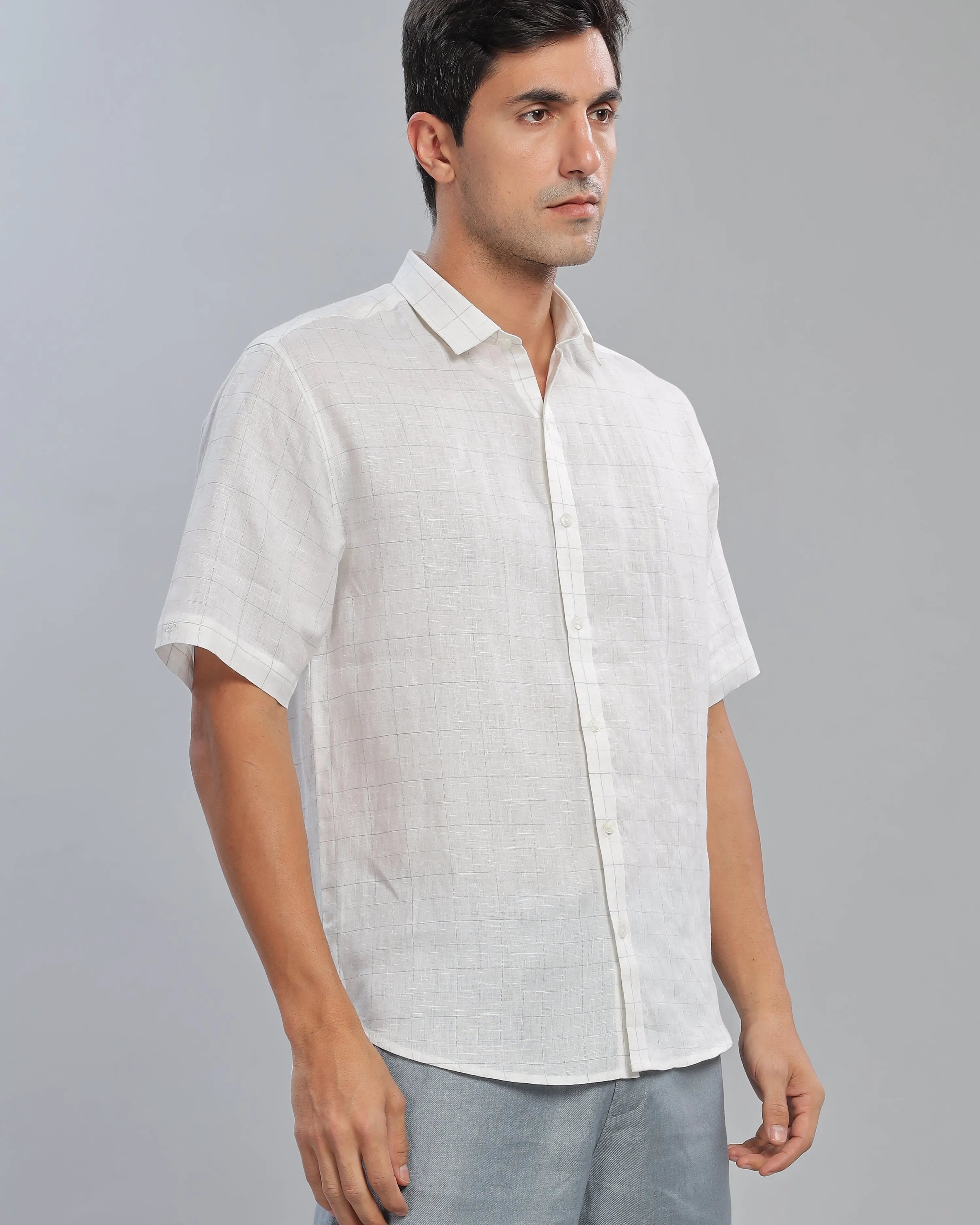 Introducing our smart Seedpearl Checked Linen Shirt! This trendy shirt is perfect for any occasion and will leave you feeling stylish and put together. Made from high-quality linen, you can stay cool while looking your best. Don't miss out on this must-have piece!