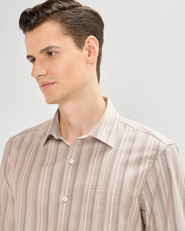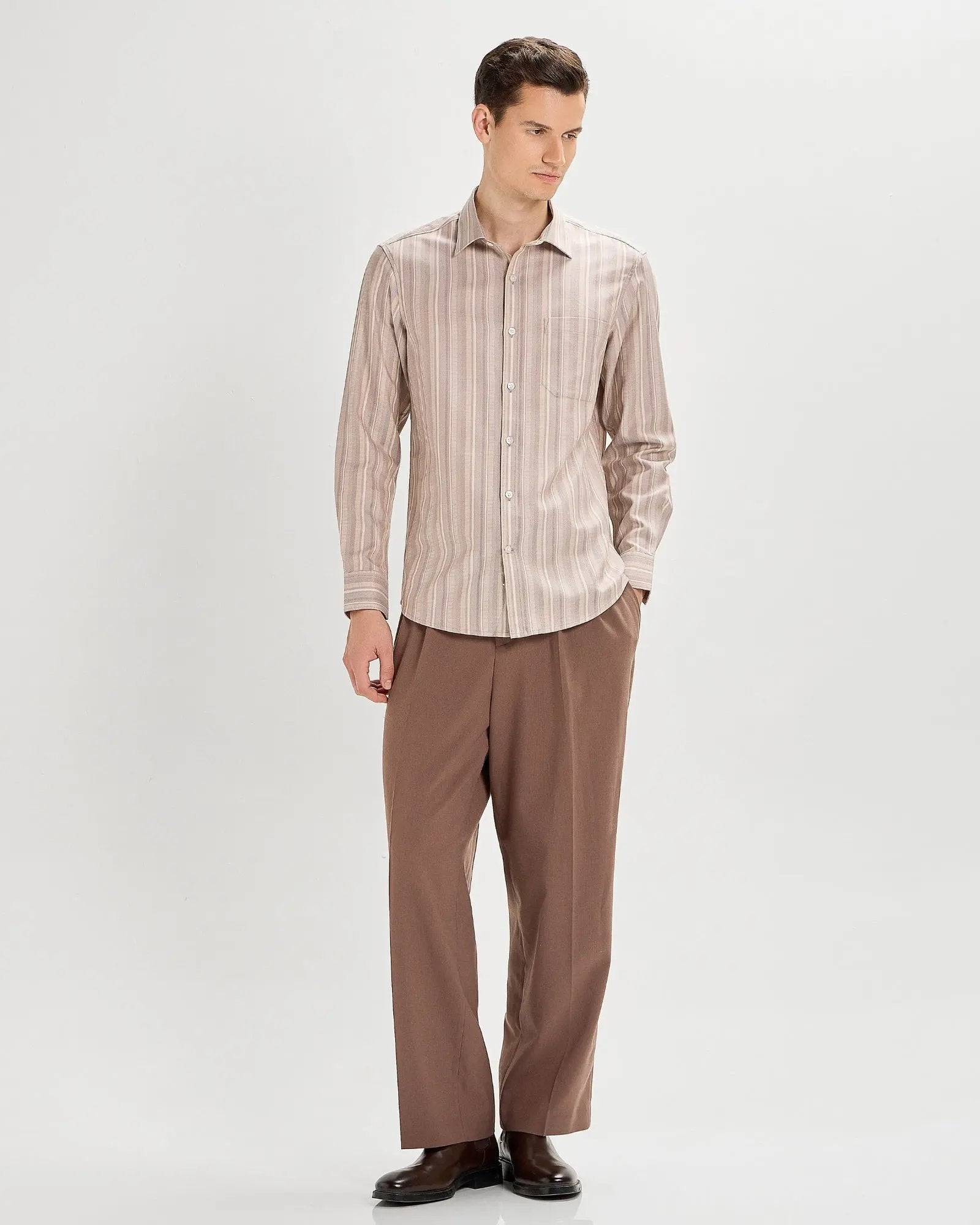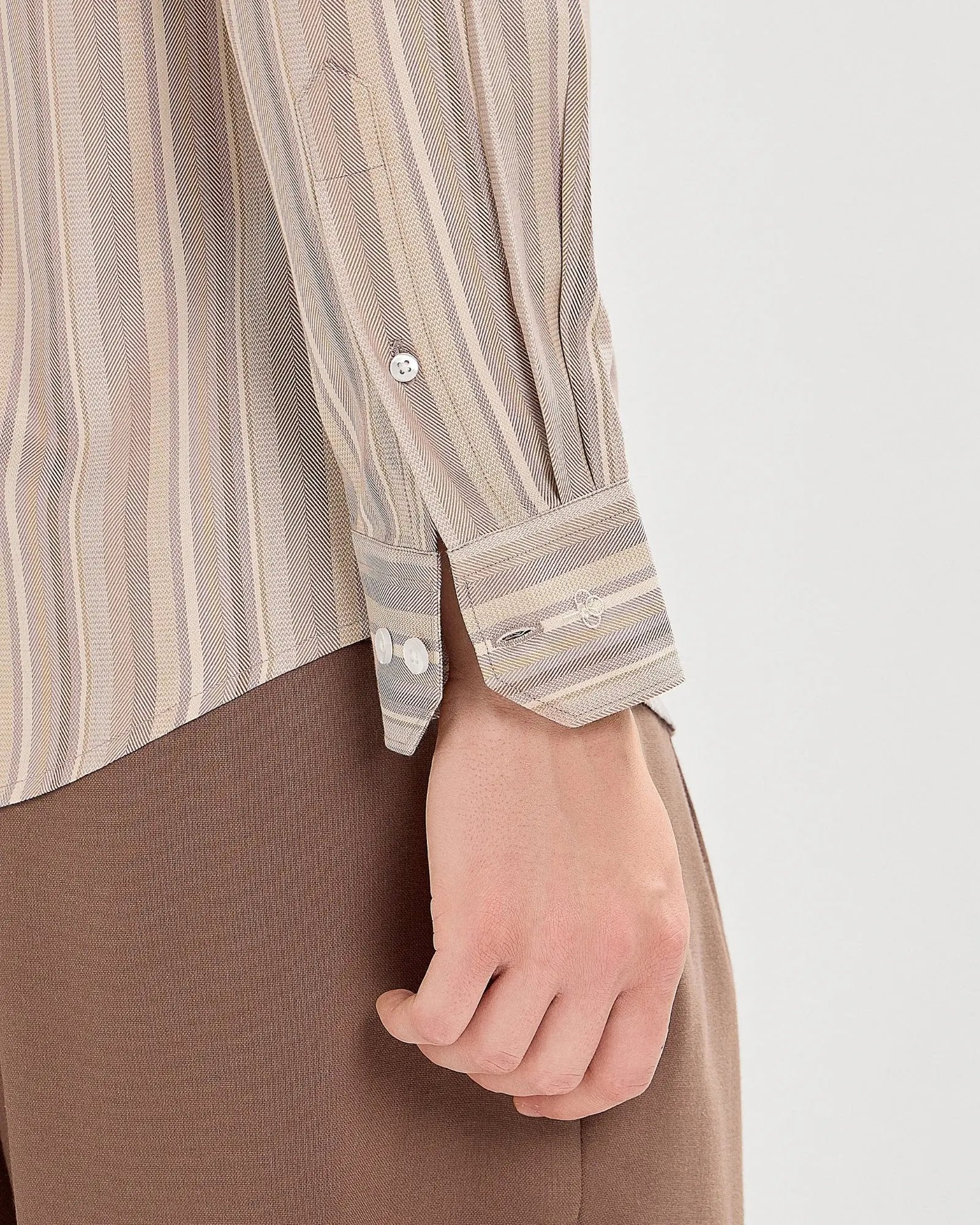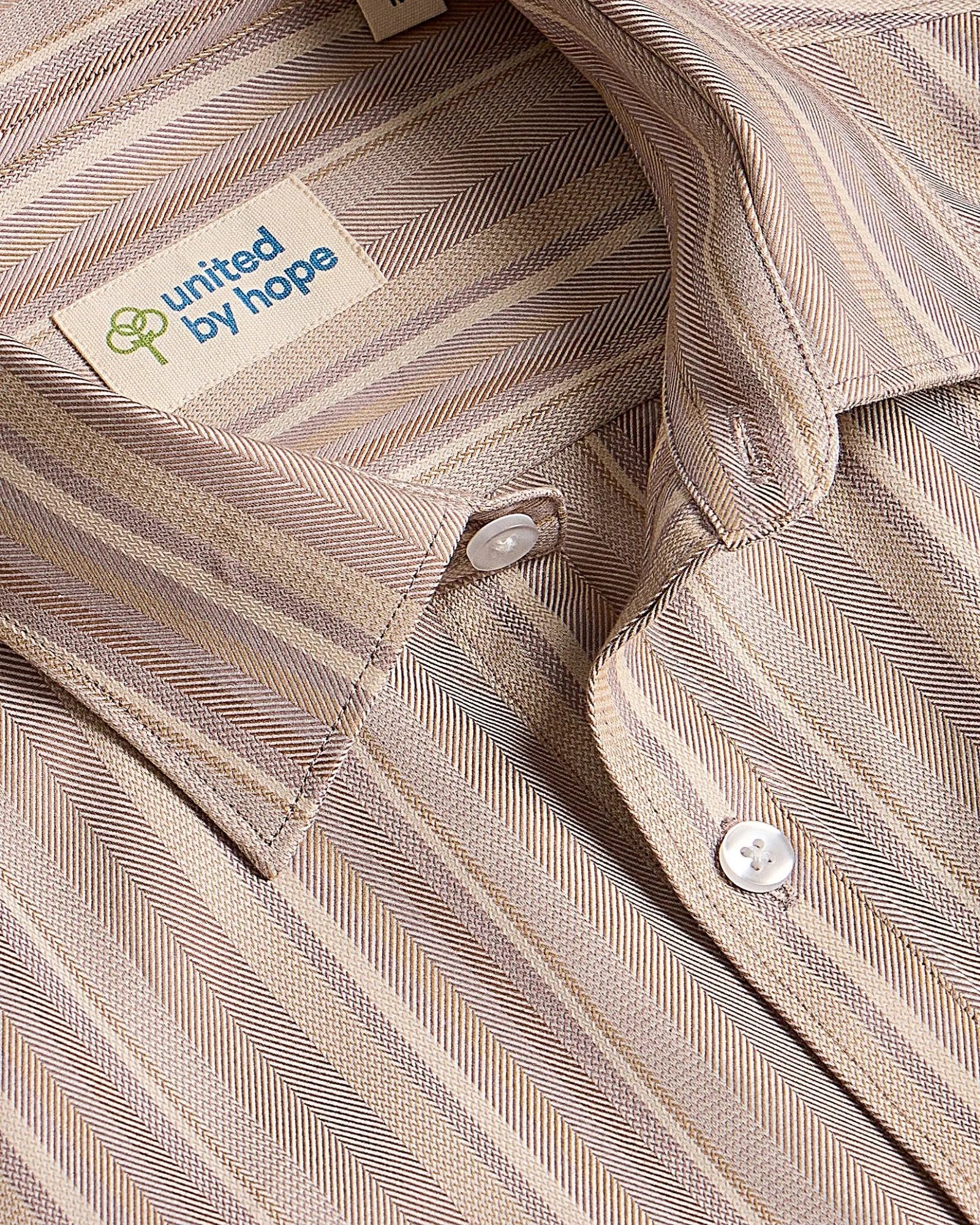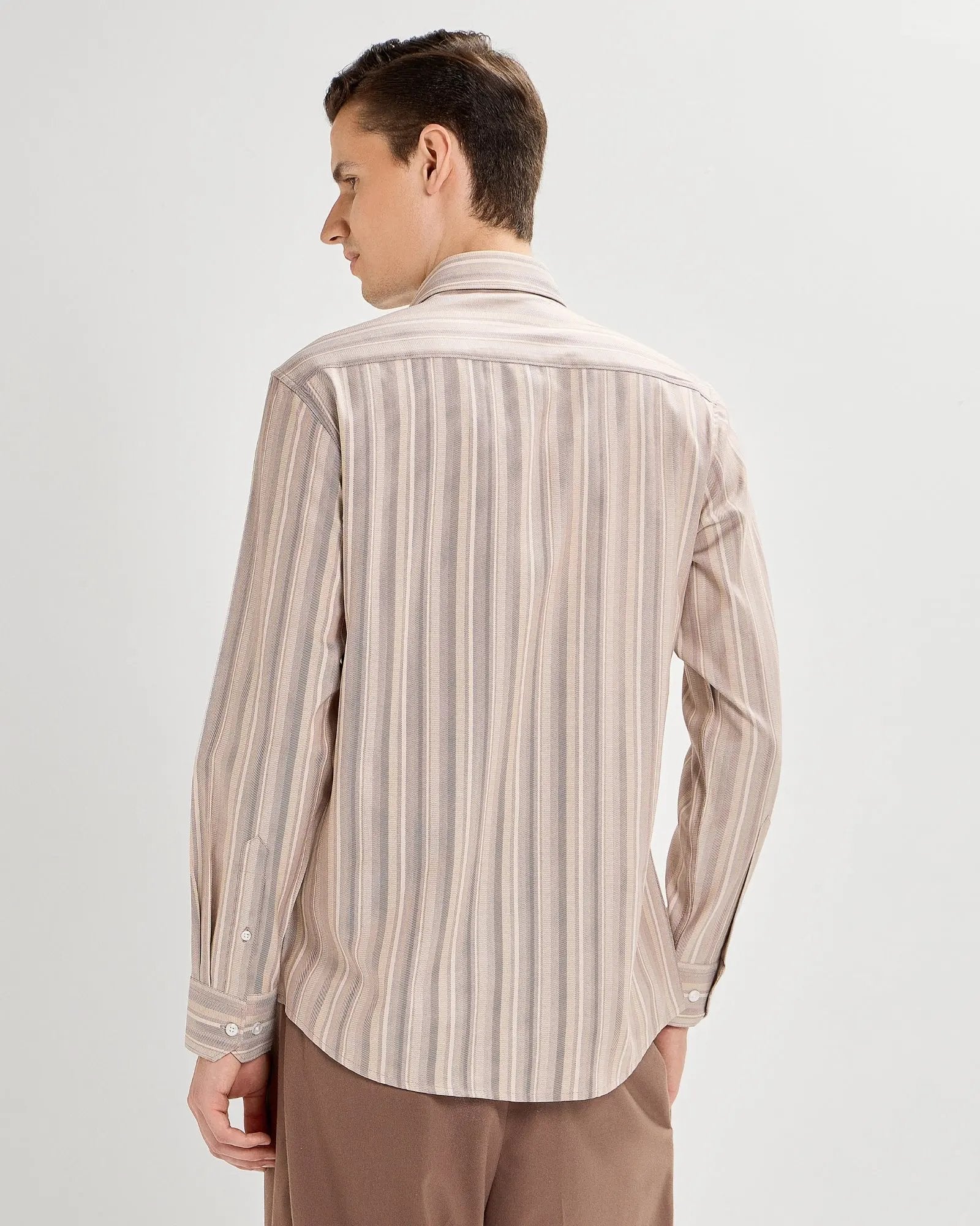 Elevate your style with our Tannin Striped Shirt. Made from luxurious Giza cotton, this structured fabric exudes sophistication and elegance. The timeless striped pattern adds a refined touch to any outfit. Experience the art of dressing with this premium shirt.