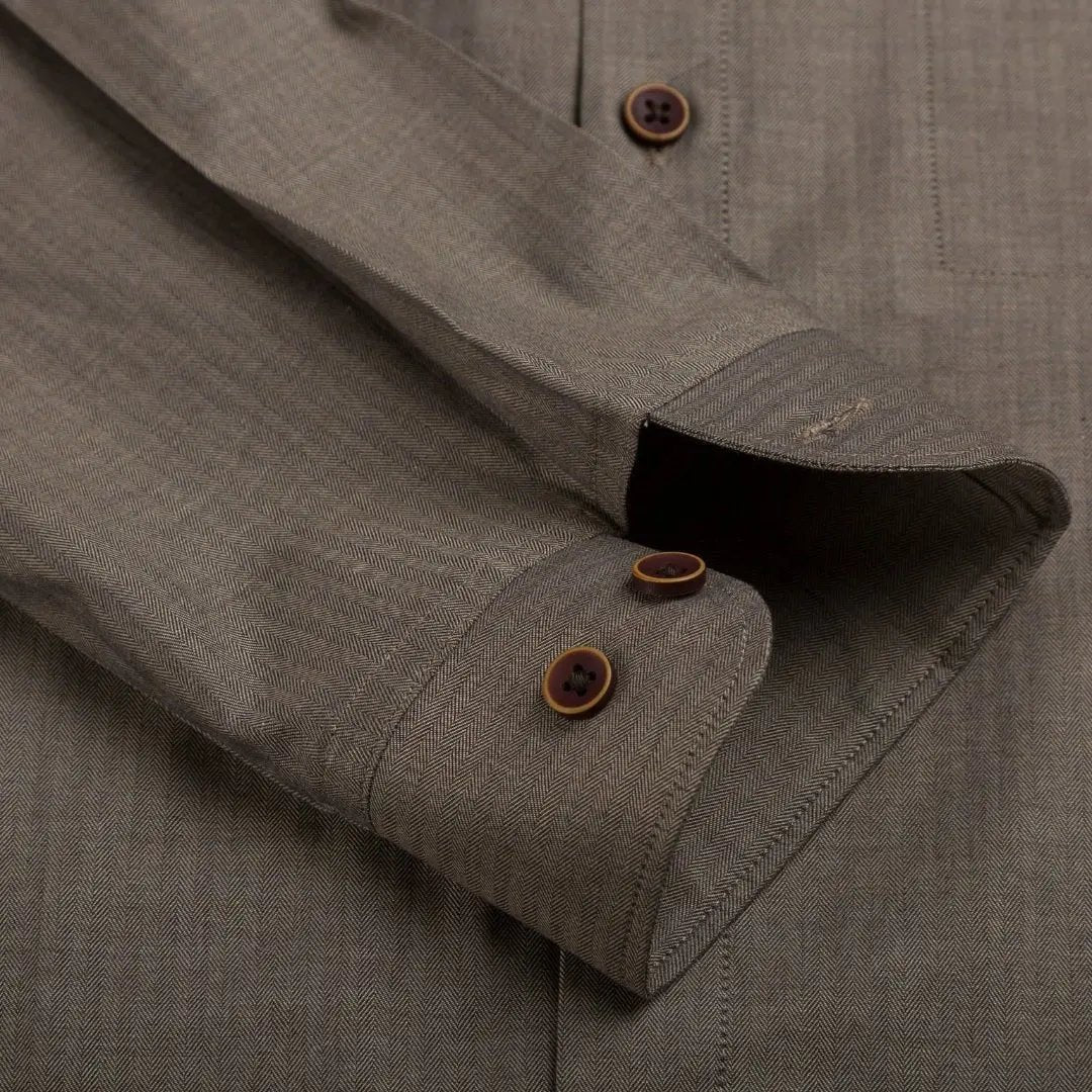Crafted from a premium Giza cotton fabric and tailored to perfection, this smart shirt with a herringbone weave exudes sophistication and is bound to make a lasting impression. The cuff designed to be rounded at the edges, so once closed creates a stylish pleat.